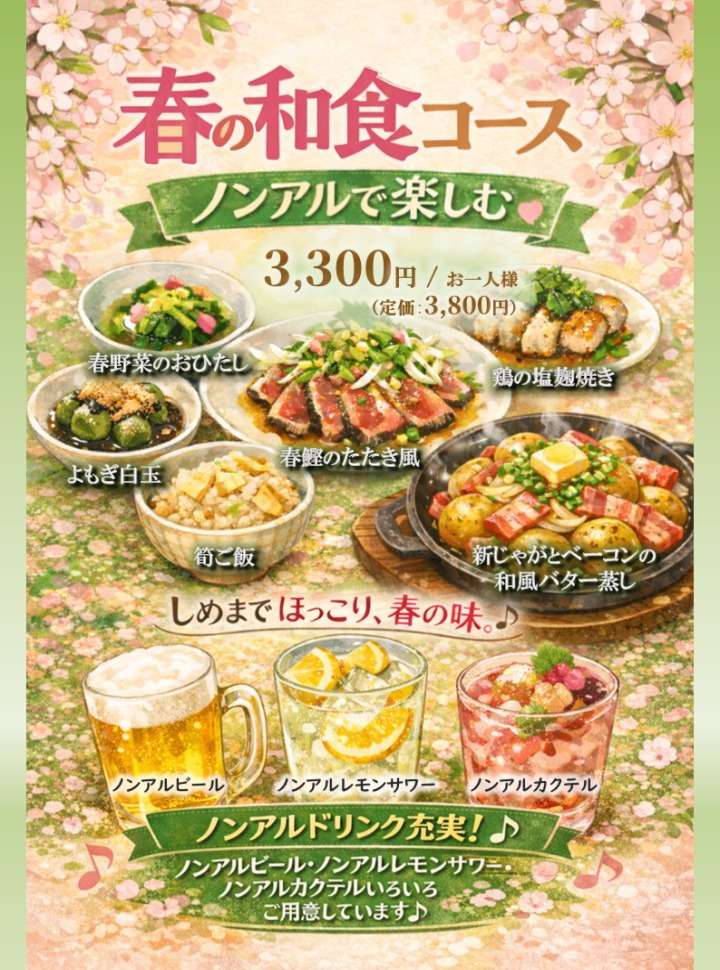 #️⃣ #お知らせ #和歌山市 #和歌山居酒屋 #和歌山市居酒屋 #和歌山の居酒屋 #和歌山市グルメ #新和食 #創作居酒屋 #七つの月の夢 #春限定コース #春の味覚 #春鰹 #蛤料理 #猪肉 #鹿肉 #筍ご飯 #和食好きな人と繋がりたい #日本酒ペアリング #春酒 #大人の夜ごはん #季節を味わう #和歌山ディナー